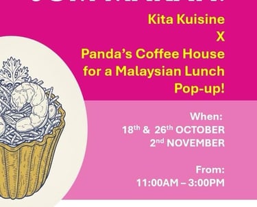 One for the diaries! We launched a Malaysian lunch pop-up with collaboration with @pandascoffeehouse, bringing the fantastic Malaysian Penang street food to you. More dates to come, and menu are on seasonal rotation, as we have so much more to offer from PENANG!