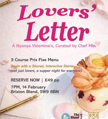 We’re back with another Min's Dinner Club, stepping through the doorway and into the heart of a Peranakan Nyonya kitchen. This is an exclusive dinner club where food is more than sustenance — it's a story on a plate. A three-course feast crafted to tell the story of the Nyonya kitchen; applying classic cooking techniques, infused with fresh flavours. Chef Min will showcase how these traditional, time-honoured spices meet contemporary culinary artistry. Each dish is a masterpiece of colour and taste, designed to surprise and delight the palate.